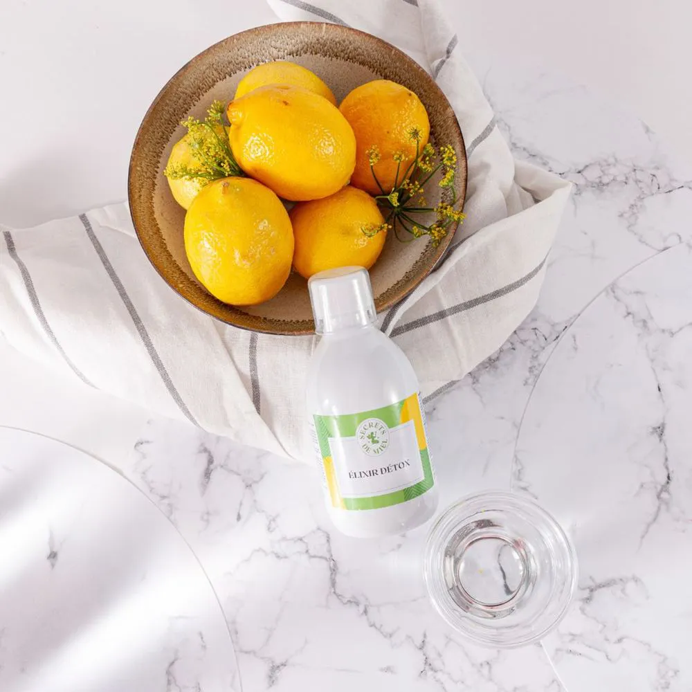 Pour une détox efficace, j’ai sélectionné l’élixir Détox de Secrets de Miel. Pourquoi ? Parce qu’il ne se contente pas de « drainer », il nourrit l’organisme grâce à une synergie unique :