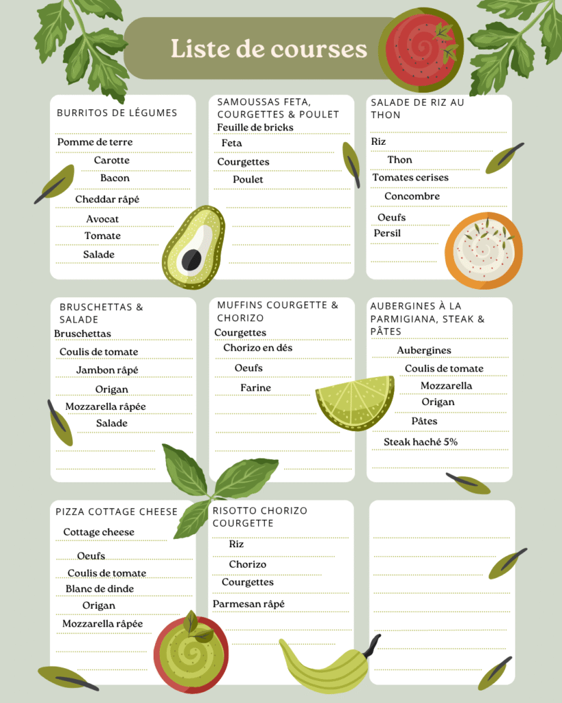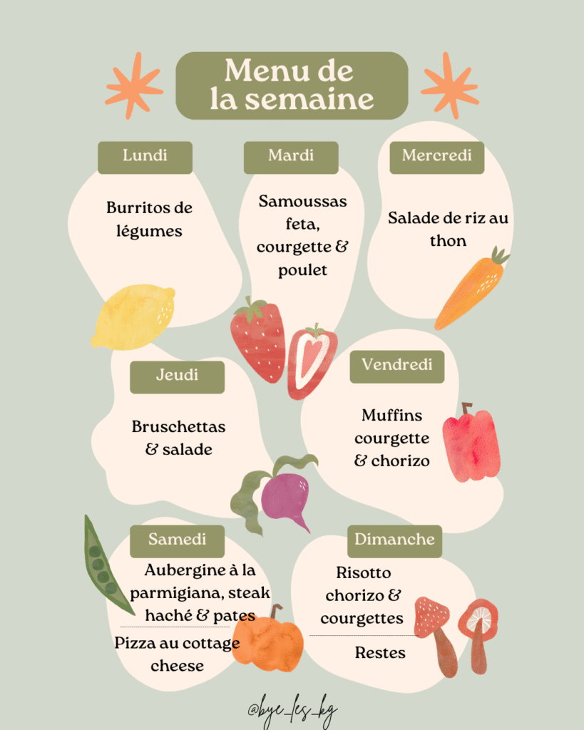 Cette semaine 33, on allie saveurs, équilibre et variété dans l’assiette. Au menu : de délicieux samoussas à la feta, courgette et poulet, croustillants et pleins de goût, des burritos de légumes colorés et riches en fibres, et une salade de riz au thon fraîche et rassasiante, parfaite pour un repas d’été.