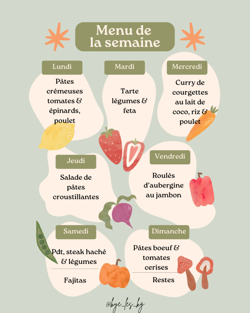 Cette semaine 36 s’annonce gourmande et équilibrée avec des repas simples à préparer et adaptés à toute la famille. On démarre avec des pâtes crémeuses aux tomates, épinards et poulet, idéales pour un dîner complet. Puis, place à une tarte aux légumes et feta colorée et légère.